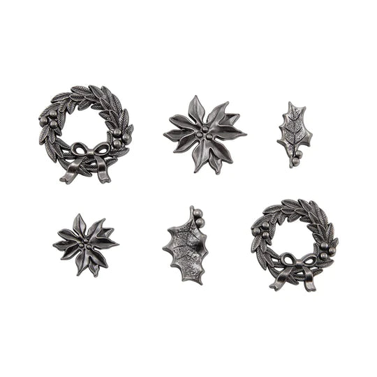 Add the perfect finishing touch to your holiday crafts with Tim Holtz - idea-ology - Deck the Halls Charms. This set of 6 decorative ornaments and adornments will add a unique and festive touch to any project. Elevate your holiday decorations with these charming pieces.