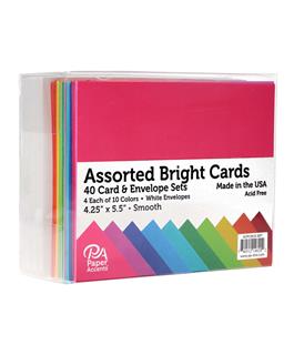 Paper Accents Card & Envelope Sets are ready to personalize. Use stickers, rubber stamps, brads, eyelets, buttons, punches, and more. They are acid-free, lignin-free, buffered, and archival quality. 4.25"x 5.5" Bright Smooth Assorted 40pc- Includes: 40 folded blank cardstock cards and 40 white envelopes; 4 each in a rainbow of 10 colors. Each card has a smooth surface.