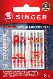 - The titanium coating resists adhesives, improves needle wear and penetration of densely woven fabrics